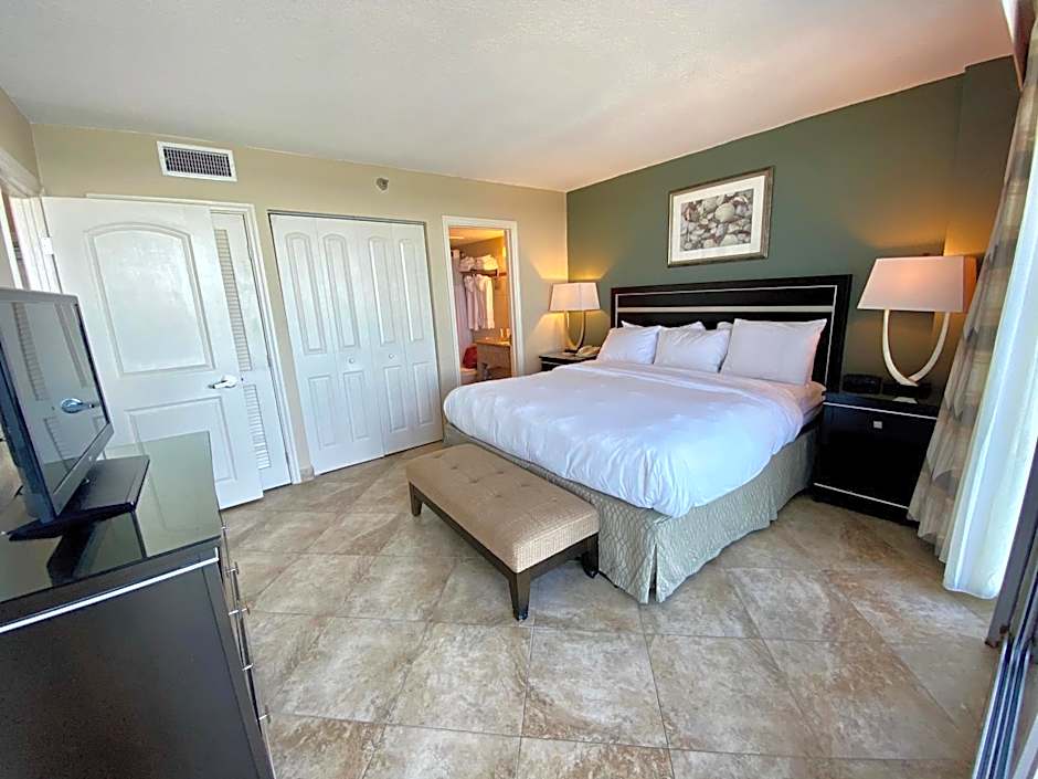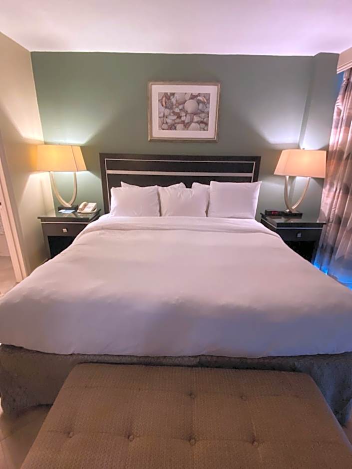 This suite includes a refrigerator, TV , coffee maker and a balcony with ocean views are available.